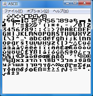 文字コードは1バイト(UBYTE型)、つまり0〜255の数値で表わされます。